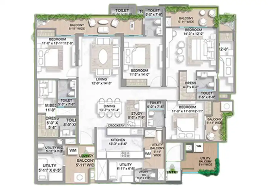 enjoy the luxurious layout with four bedrooms, a utility room, and a private terrace